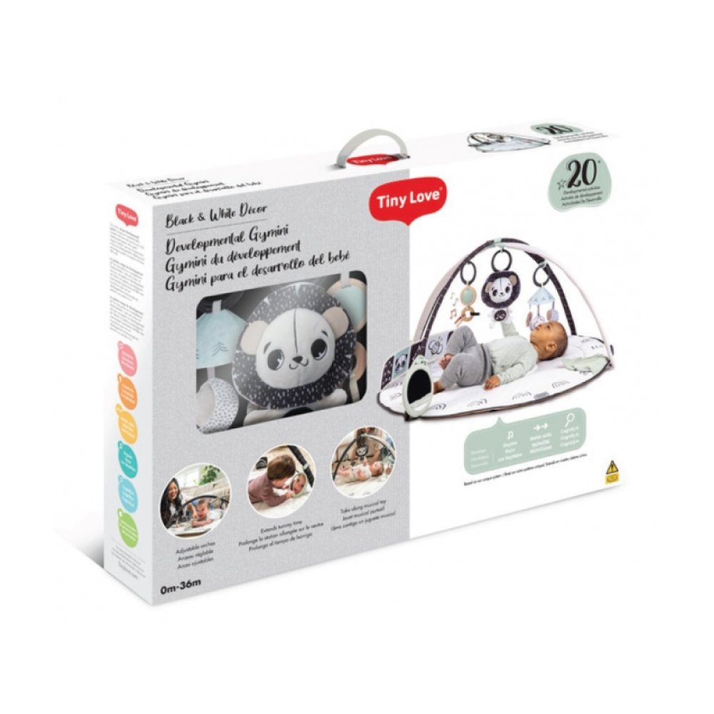 Hracia deka s hrazdou Tiny Love Gymini Black & White v unikátnom čierno-bielom prevedení, ktoré upúta pozornosť dieťaťa už od narodenia, ponúka rôzne aktivity na zabavenie a stimuláciu zmyslov dieťaťa.