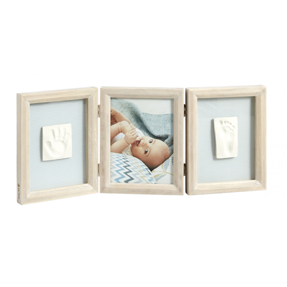 Drevený rámik Baby Art My Baby Touch ponúka tri oddelené priestory pre fotografiu a odtlačok ručičky a nožičky Vášho bábätka. Vyrobte si krásnu dekoráciu, ktorá vám zároveň pomôže uchovať spomienky na krásne obdobie po narodení vášho dieťaťa.
