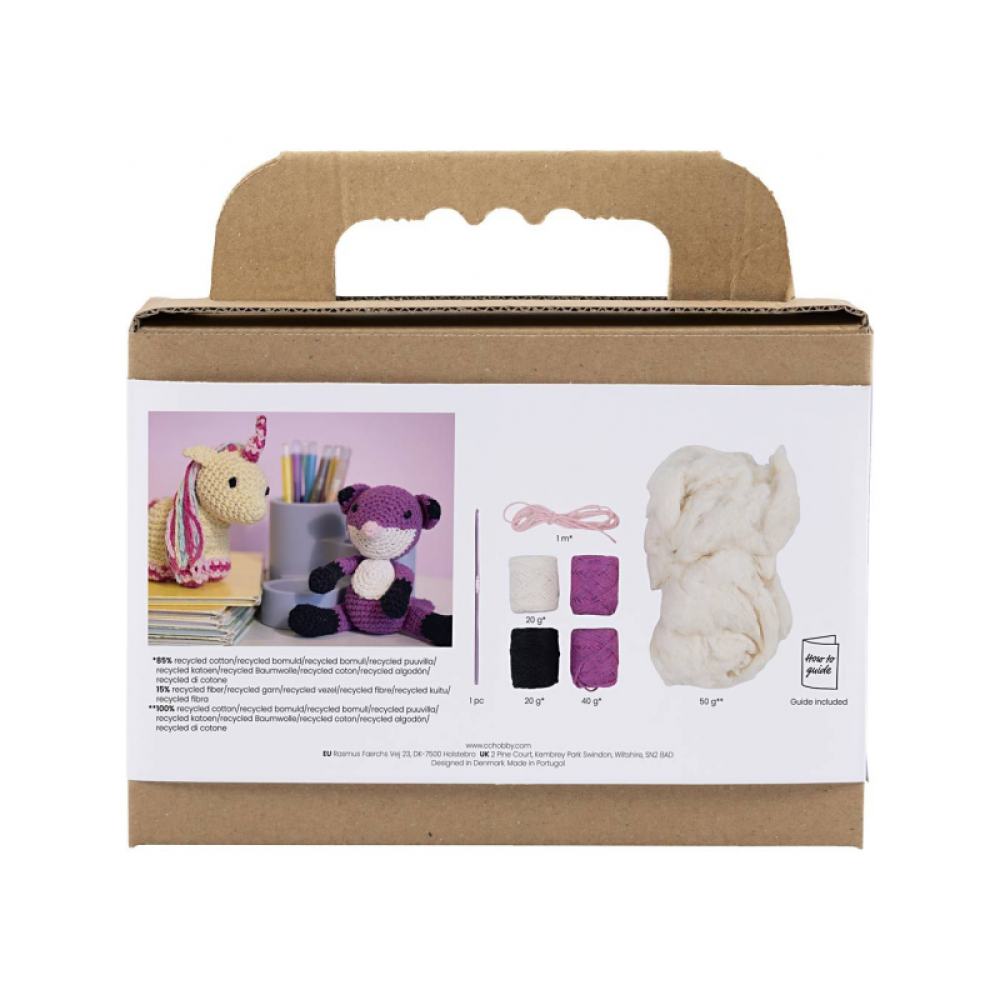 Obsah balenia: priadza, výplň, háčkovací návod, háčik (ihla nie je súčasťou balenia)