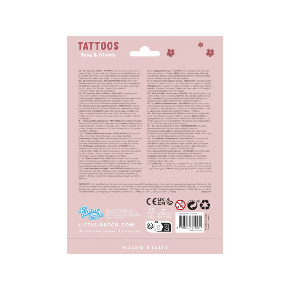 Dočasné detské tetovanie s krásnymi motívmi Rosy, jej kamarátov z lúky a ďalších prírodných motívov. Samolepiace tetovanie sa ľahko aplikuje s pomocou vlhkej hubky.