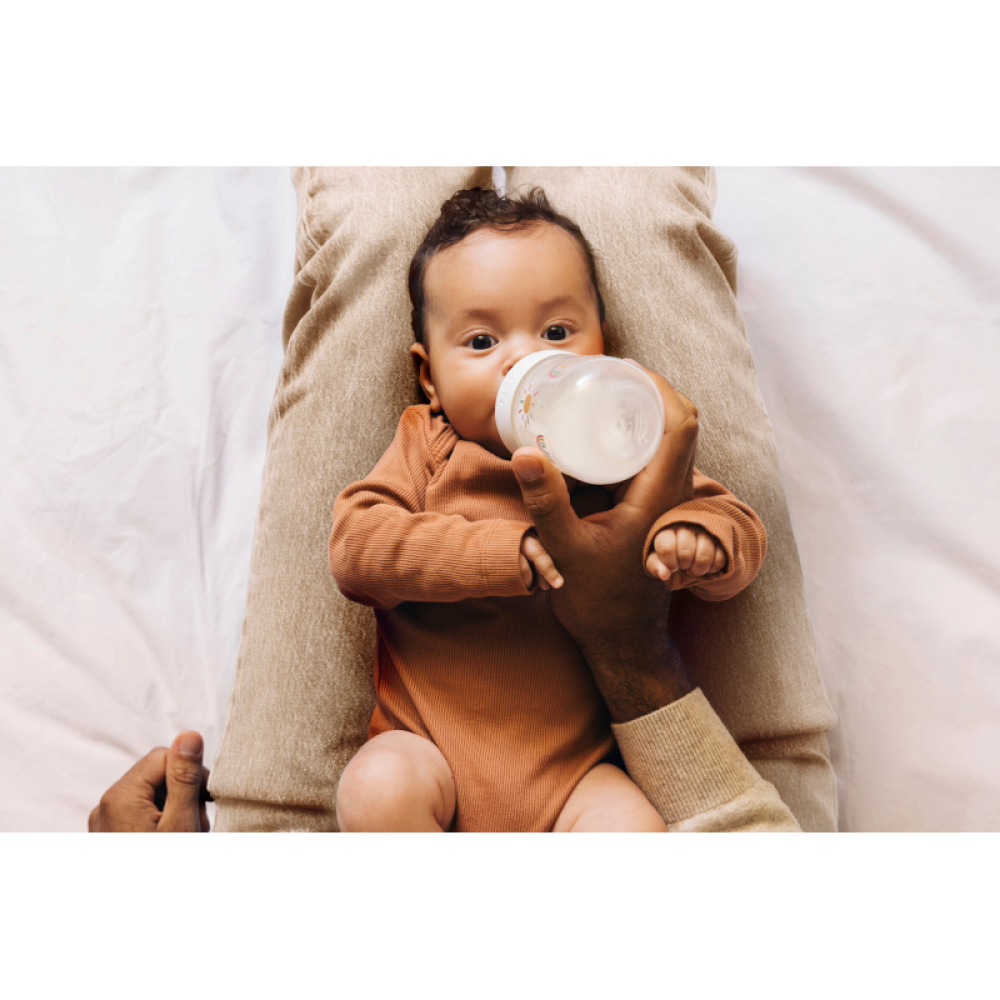 Dojčenská fľaša Little Dutch s krásnou potlačou a cumlíkom s antikolikovým ventilom je ideálna na kŕmenie vášho bábätka od narodenia doma aj na cestách. Vďaka ergonomickému tvaru sa fľaštička pohodlne drží.