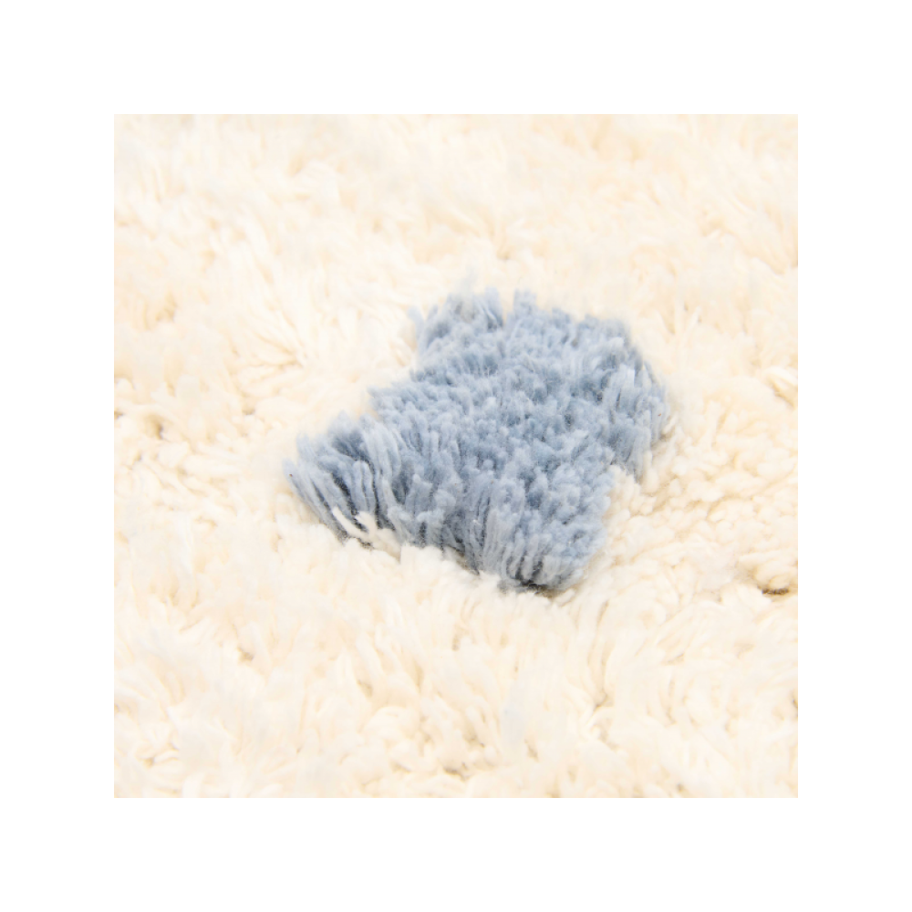 Koberec je vyrobený zo 100% organickej bavlny s vysokou gramážou a jeho protišmyková latexová vrstva zaisťuje bezpečné používanie. Koberček je možné ľahko vyprať v práčke aj usušiť v sušičke, čo uľahčuje jeho údržbu.