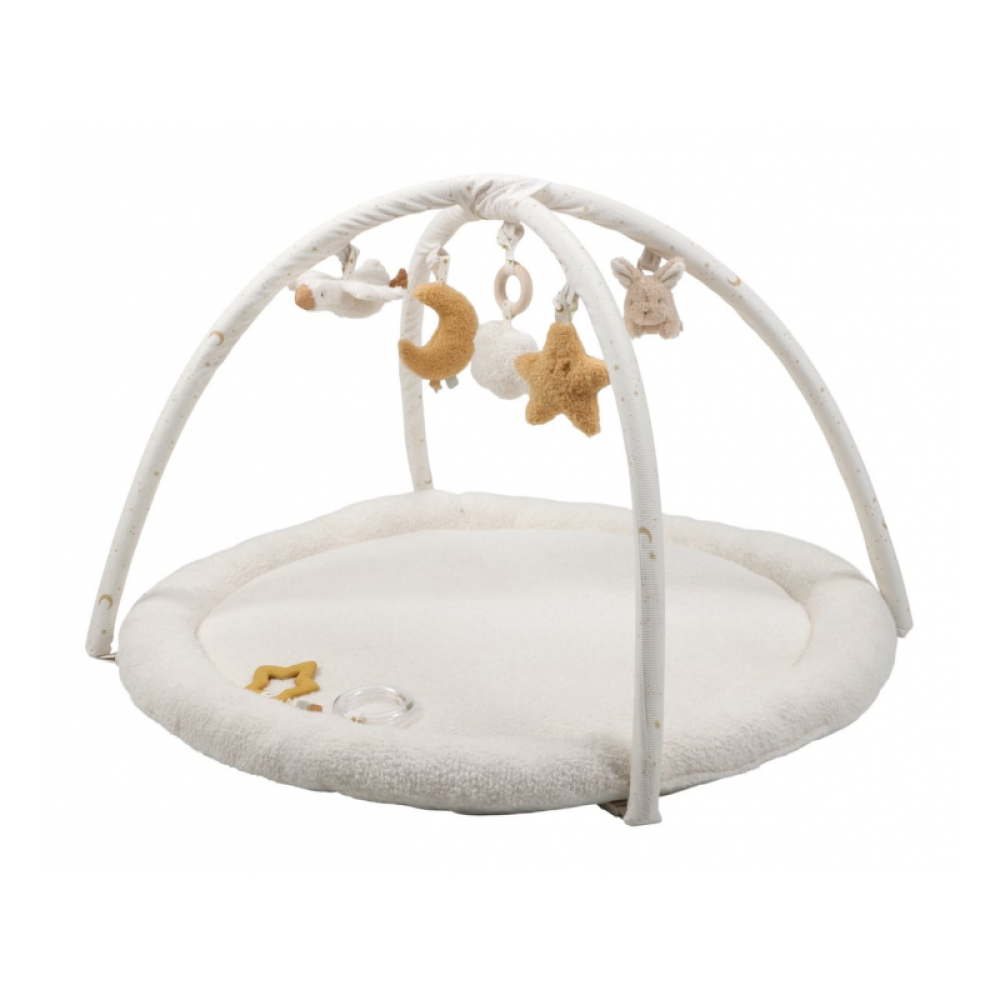 Mäkká hracia deka s hrazdou, na ktorej sú zavesené hračky v podobe králika, husi, mesiaca, hviezdičky a mráčika. Pri skúmaní hračiek upúta pozornosť dieťaťa hrkanie, šušťanie, pískanie i zvonenie. Hračky sú odnímateľné a je možné ich používať aj samostatne.