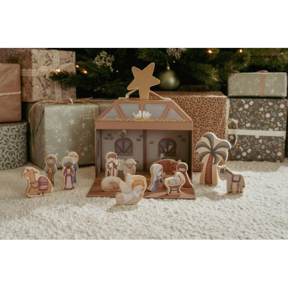 Krásny betlehem s postavami z tradičného vianočného príbehu poteší vás aj vaše deti každé Vianoce. 14 postavičiek je vyrobených z dreva, chliev z kvalitného pevného kartónu slúži aj ako prenosný a úložný kufrík.