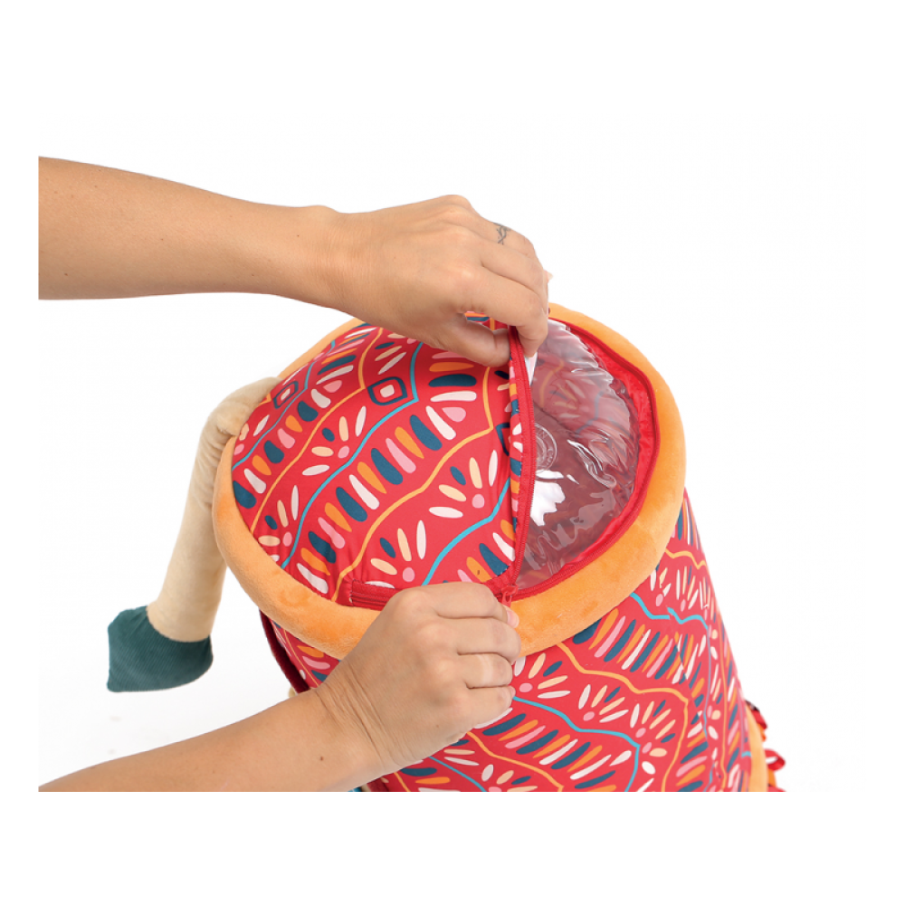 Originálna hračka v tvare valca s množstvom aktivít na skúmanie zabaví dieťa a súčasne podnecuje rozvoj jeho zmyslov a motorických zručností. Vnútri skrýva cinkajúce loptičky, textilný poťah ponúka rôznorodé textúry, bezpečné zrkadlo aj hrkálku.
