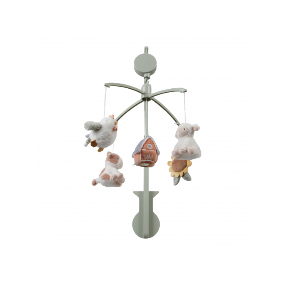 Kolotoč s naťahovacím hudobným boxom hrá nežnú uspávanku pre pokojné zaspávanie. Pozornosť dieťaťa upútajú otáčajúce sa plyšové hračky v podobe ovečky, sliepočky, kravičky, slnečnice a domčeka. Kolotoč ľahko pripevníte na bočnicu postieľky.