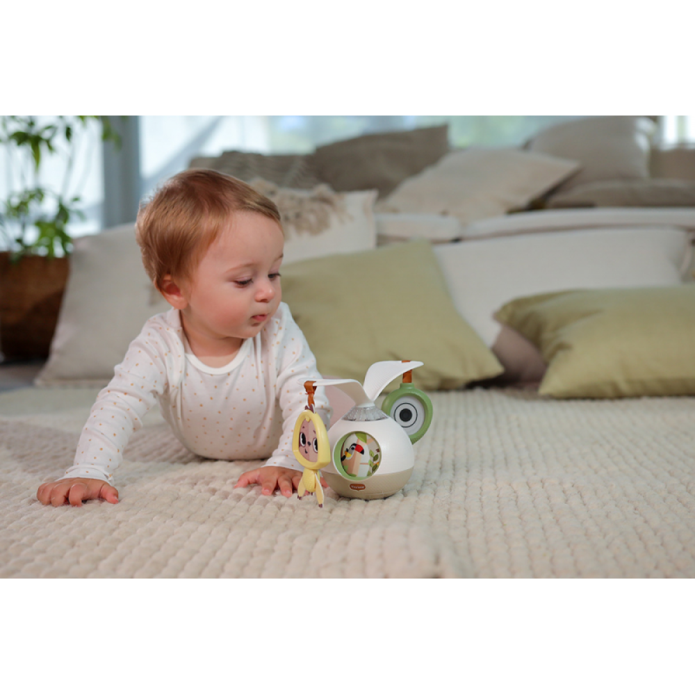 Unikátny hudobný box s hudbou, svetielkami a otočnými ramenami podnecuje dieťa k hre na brušku. Pre malé dieťatko, ktoré trávi väčšinu dňa aj noci ležaním na chrbte, je dôležité, aby trávilo niekoľkokrát denne čas ležaním na brušku a takzvaným „pasením koníčkov“. Poloha na brušku prináša dieťatku iný pohľad na svet a posilňuje krčné a chrbtové svaly, ktoré neskôr umožňujú dieťaťu začať sa pretáčať, liezť a sedieť bez opory. Hudobný box ponúka dieťaťu aktivity, ktoré ho udržia dlhšie spokojné v polohe na brušku.