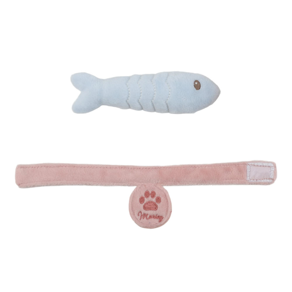 Mačička prichádza v elegantnej kvetovanej taške s predným otvorom, aby mohla zvedavo vykukovať von. Vďaka tomu si ju deti môžu vziať kamkoľvek – na prechádzku, na výlet, do škôlky alebo napríklad k starým rodičom. Na krku má prívesok so svojim menom. Plyšová rybka na hranie má vo vnútri magnet, takže drží mačičke pri papuľke.