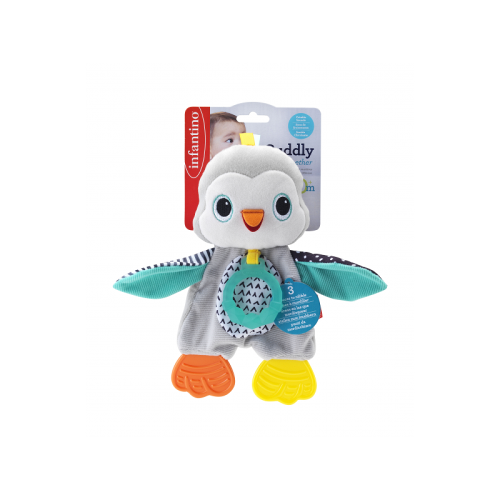 Maznáčik tučniak s hryzátkami je vhodný ako prvá hračka dieťaťa. Rôznorodé textúry aj šuštiace časti lákajú dieťa k skúmaniu rukami aj ústami. Hryzátka dieťaťu uľavia pri prerezávaní prvých zúbkov.