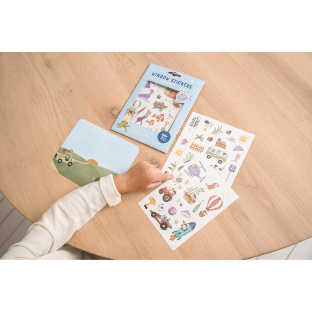 Snímateľné samolepky v podobe motívov zo života Jima a jeho kamarátov z kolekcie Little Dutch Jim & Friends sú určené na použitie na okne, zrkadle či na priloženej papierovej štvrtke s natlačeným pozadím s morským dnom. Samolepky je možné ľahko odlepiť a použiť opakovane.