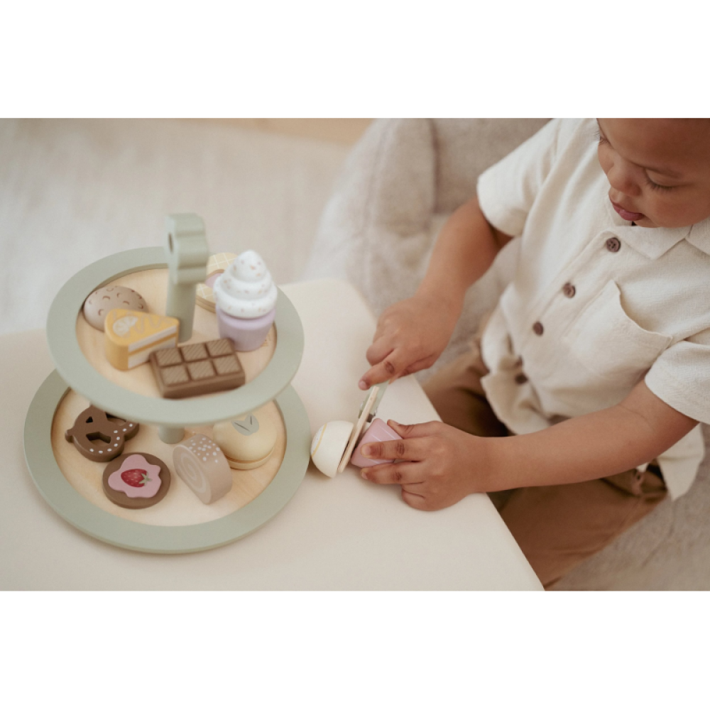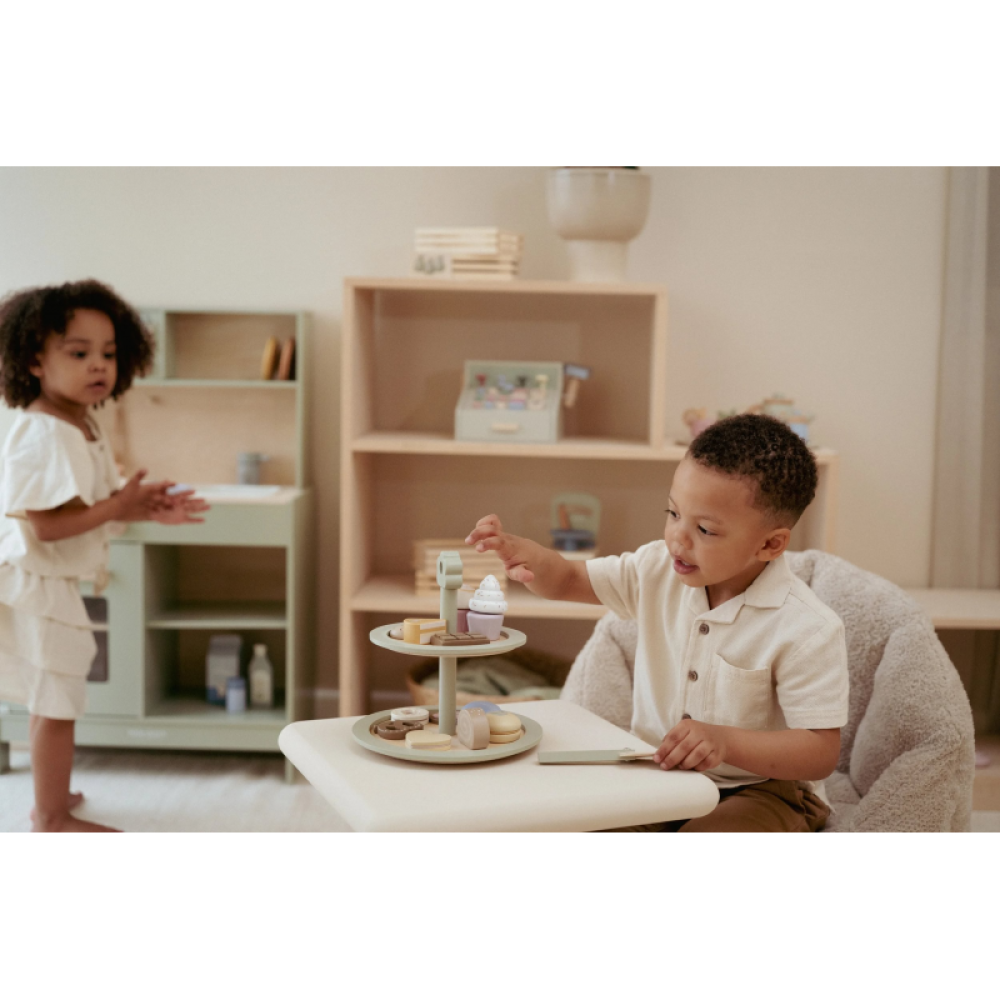Máte chuť na sladký dezert? Nádherný stojan na pečivo Little Dutch s výberom sladkých dobrôt je ako stvorený pre všetkých malých hostiteľov a hostiteľky. Na dvoch poschodiach môžu aranžovať a ponúkať svojim hosťom rôzne druhy lákavých zákuskov. Vďaka obrázkovému menu si hostia môžu vyberať a objednávať svoju obľúbenú sladkosť.