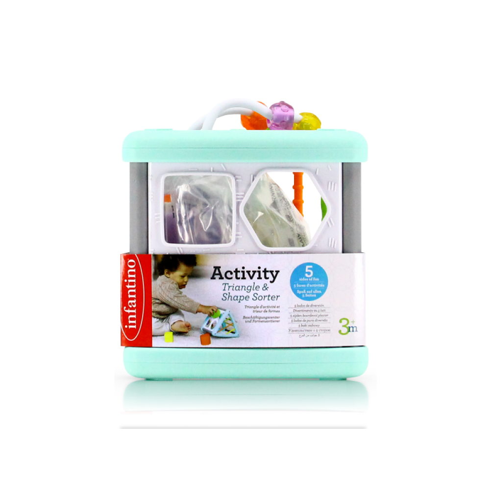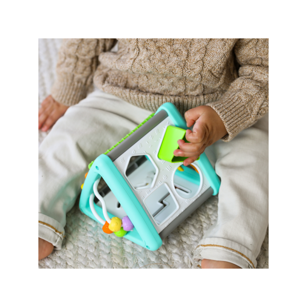 Interaktívna hračka ponúka päť strán zábavných aktivít vrátane otvorov pre štyri farebné vkladacie tvary. Lákať na skúmanie budú aj pohyblivé korálky a pružné farebné hadičky s rôznorodými textúrami.