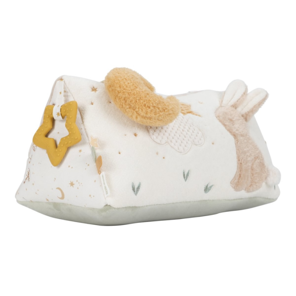 Dotýkaj sa, hraj sa a objavuj! Tento mäkký trojhranný vankúšik ponúka vášmu bábätku veľa vnemov a zábavy. Rôzne textúry, jemné zvuky a roztomilé detaily podnecujú zmyslový vývoj a motivujú k skúmaniu.