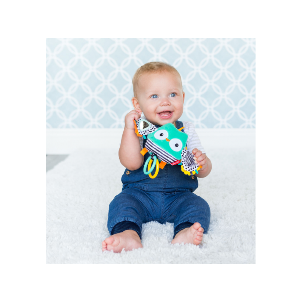 Originálna hračka, ktorá zabaví deti aj ich rodičov. Zatiahnite za krúžok a sledujte spolu s dieťaťom, ako sova vibruje a máva krídlami! Pozornosť dieťaťa upútajú aj výrazné farby a rôznorodé textúry na skúmanie vrátane bezpečného zrkadielka.