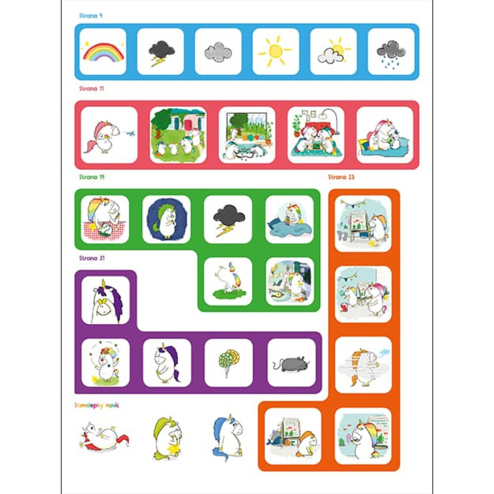 Sešit obsahuje farebné obrázky jednorožcov, hádanky, logické úlohy, farebné stránky na maľovanie a mnoho ďalších zábavných aktivít. Deti sa budú môcť zabaviť a zároveň sa učiť nové veci prostredníctvom tejto interaktívnej knihy.