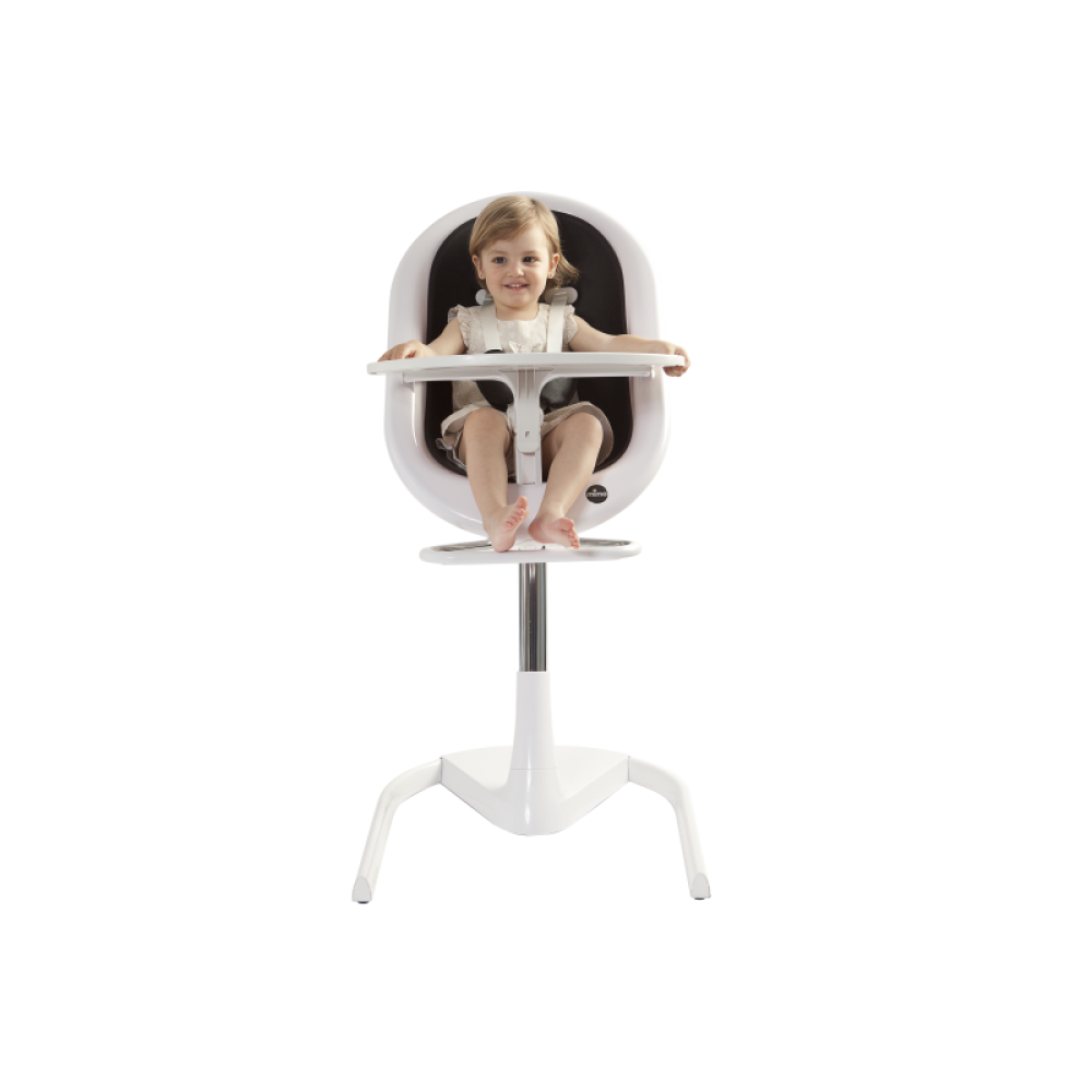 Štýlová stolička Mima Moon je to pravé pre milovníkov súčasného špičkového dizajnu. Svojím riešením 3v1 umožní dieťaťu byť už od narodenia až do školského veku súčasťou rodinného stolovania. Vďaka rôznym možnostiam náklonu a voliteľnému vkladaciemu polstrovaniu je vhodná pre bábätká od narodenia. S odnímateľným pultom a opierkou nôh je použiteľná ako stolička na kŕmenie pre batoľatá od 6 mesiacov. Vybratím vnútorného sedáka stoličku ľahko premeníte na stoličku pre väčšie deti, ktoré ju môžu používať samostatne pri stole. Stolička je veľmi jednoducho výškovo nastaviteľná a vo svojej maximálnej výške sa hodí aj ku kuchynským barovým pultom. Pevná a stabilná konštrukcia je zárukou bezpečia pre dieťa. Kolieska Easy-Glide uľahčujú presúvanie stoličky v interiéri.
